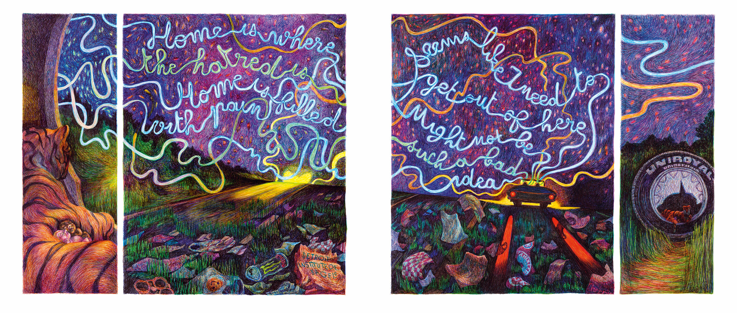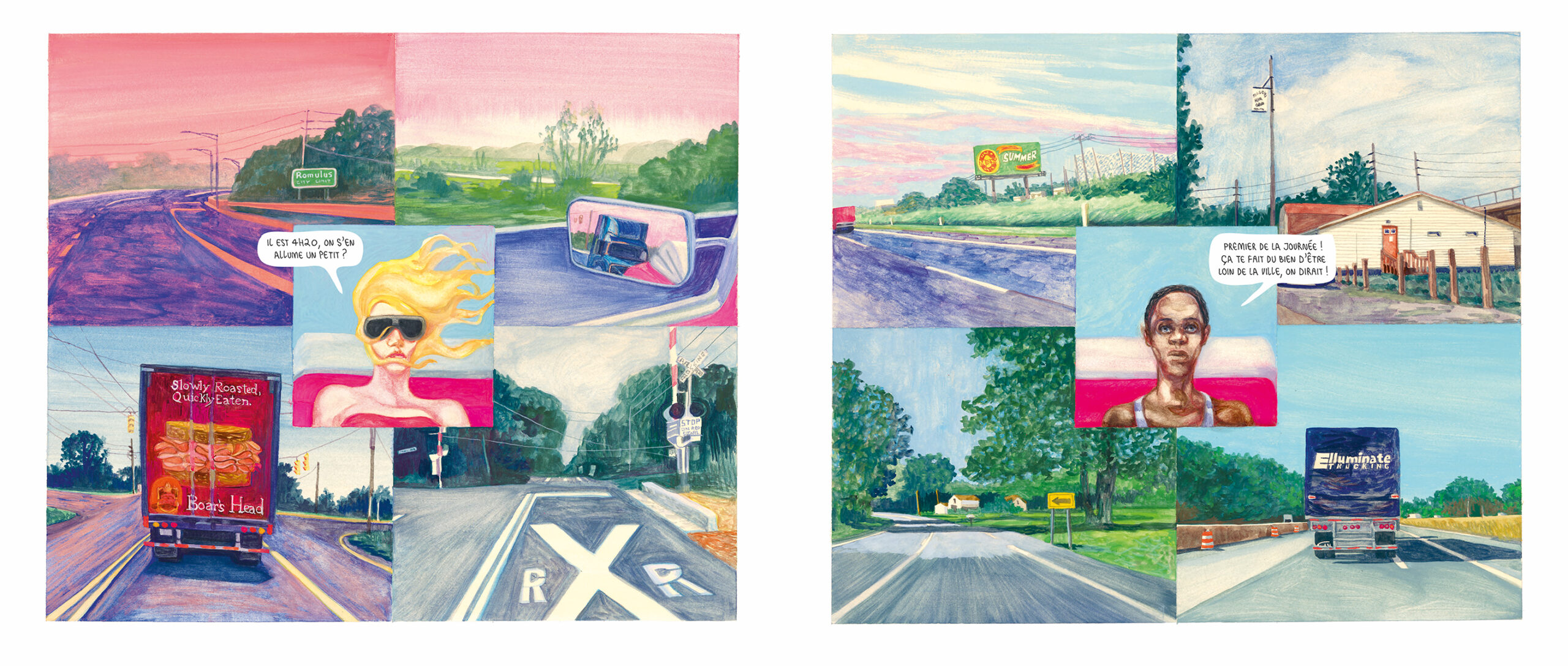 Detroit, 2015. A bordo di una vecchia Ford Galaxy, due giovani ragazze viaggiano da nord a sud attraverso un’America in declino. In fuga dalla loro città natale, Detroit, si dirigono verso Roma, in Georgia, una pallida copia dell’antica città. È un viaggio in auto tanto misterioso quanto significativo. Per Becki si tratta di seguire il percorso degli schiavi, i suoi antenati. Per Summer è un tributo alle radici italiane di sua madre, Gloria. Durante il viaggio, Becki sfoglia i suoi quaderni di schizzi, già anneriti dalla loro storia, dai loro drammi quotidiani e dalla loro caotica amicizia. Nel corso degli schizzi, dei chilometri percorsi e delle confidenze, le due amiche svelano i segreti di famiglia che hanno legato i loro destini molto prima di nascere.