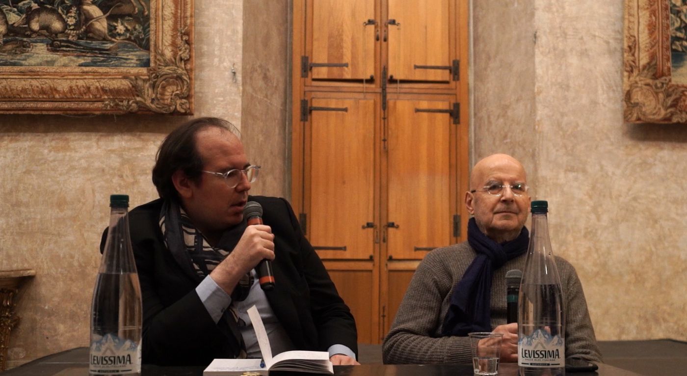 Donatien Grau et Pierre Guyotat, le 15 décembre 2019 à la Villa Médicis