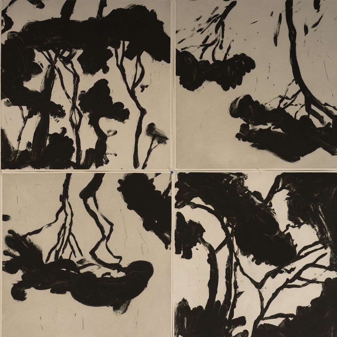 En dessinant, l’artiste cherche à établir une typologie : forme, rythme et classification. Elle collectionne des essences et constitue une archive personnelle où elle capte l’âme des arbres, présents et disparus. Son exploration nourrit son travail dans l’atelier où par une alchimie qui lui est propre, elle fabrique des épreuves uniques à mi-chemin entre peinture et gravure.