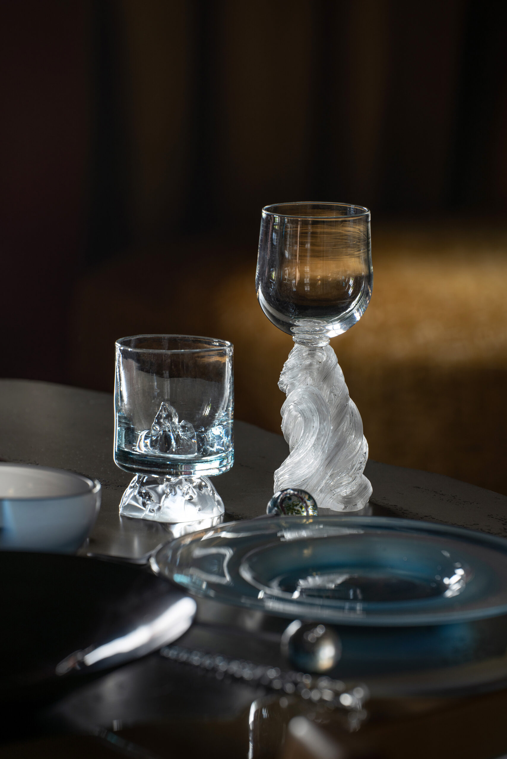 Eve George (1992, France) est designer et souffleuse de verre. Formée à l’École Boulle puis à l’École Nationale Supérieure de Création Industrielle, elle se forme et se spécialise ensuite dans le soufflage de verre à la canne. En 2017, avec Laurent Fichot, elle co-fonde l’Atelier George, un espace hybride entre atelier de verre soufflé et studio de design. Le duo développe un travail autour de l’objet, nourri par une recherche esthétique du décor verrier et interrogeant la multiplication de l’œuvre par l’outil et le geste. En 2023, Eve est résidente de la Villa Albertine à New York. Elle y confirme une pratique du verre en fusion entre les champs artistiques du design et de l’installation.