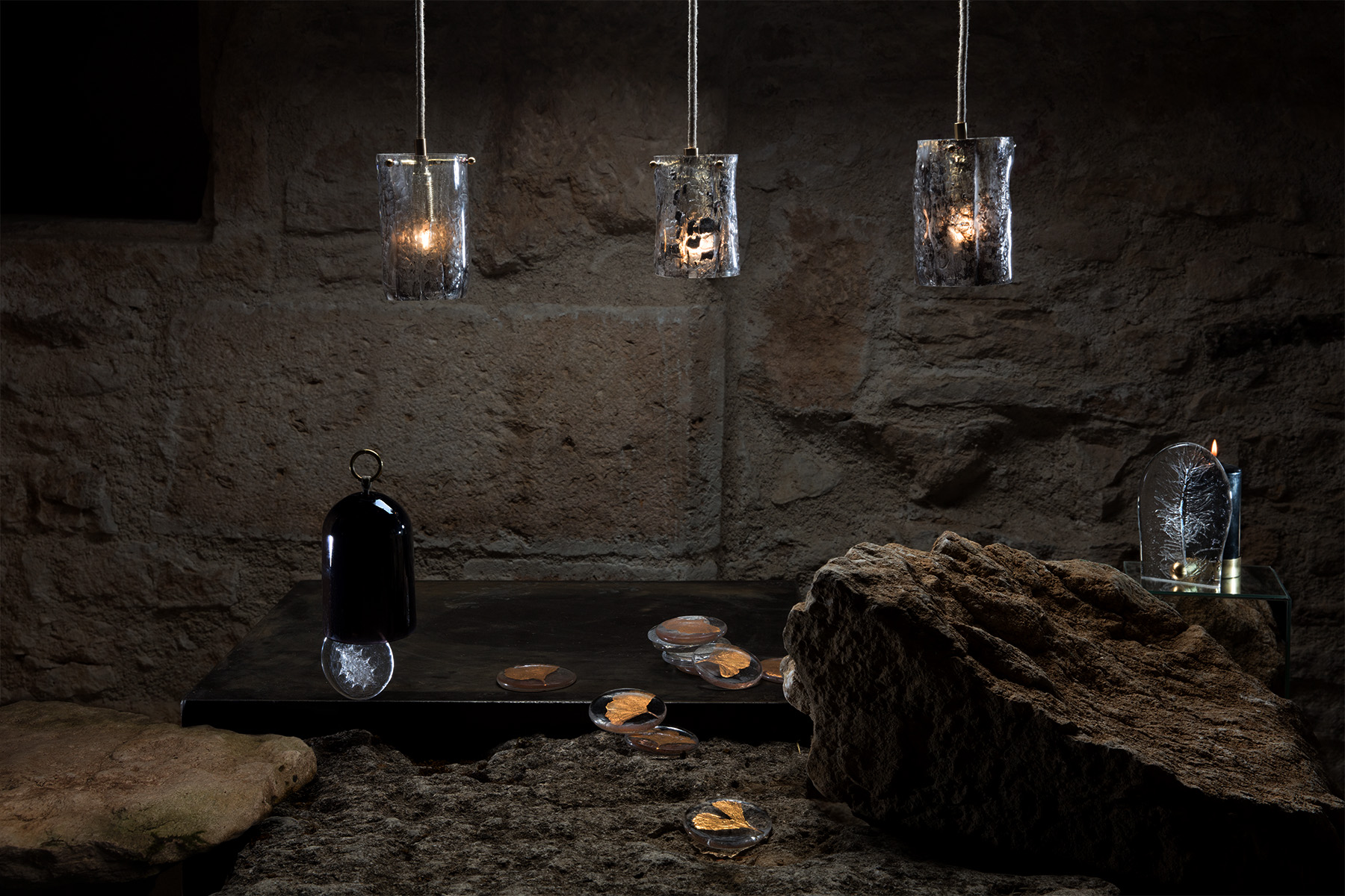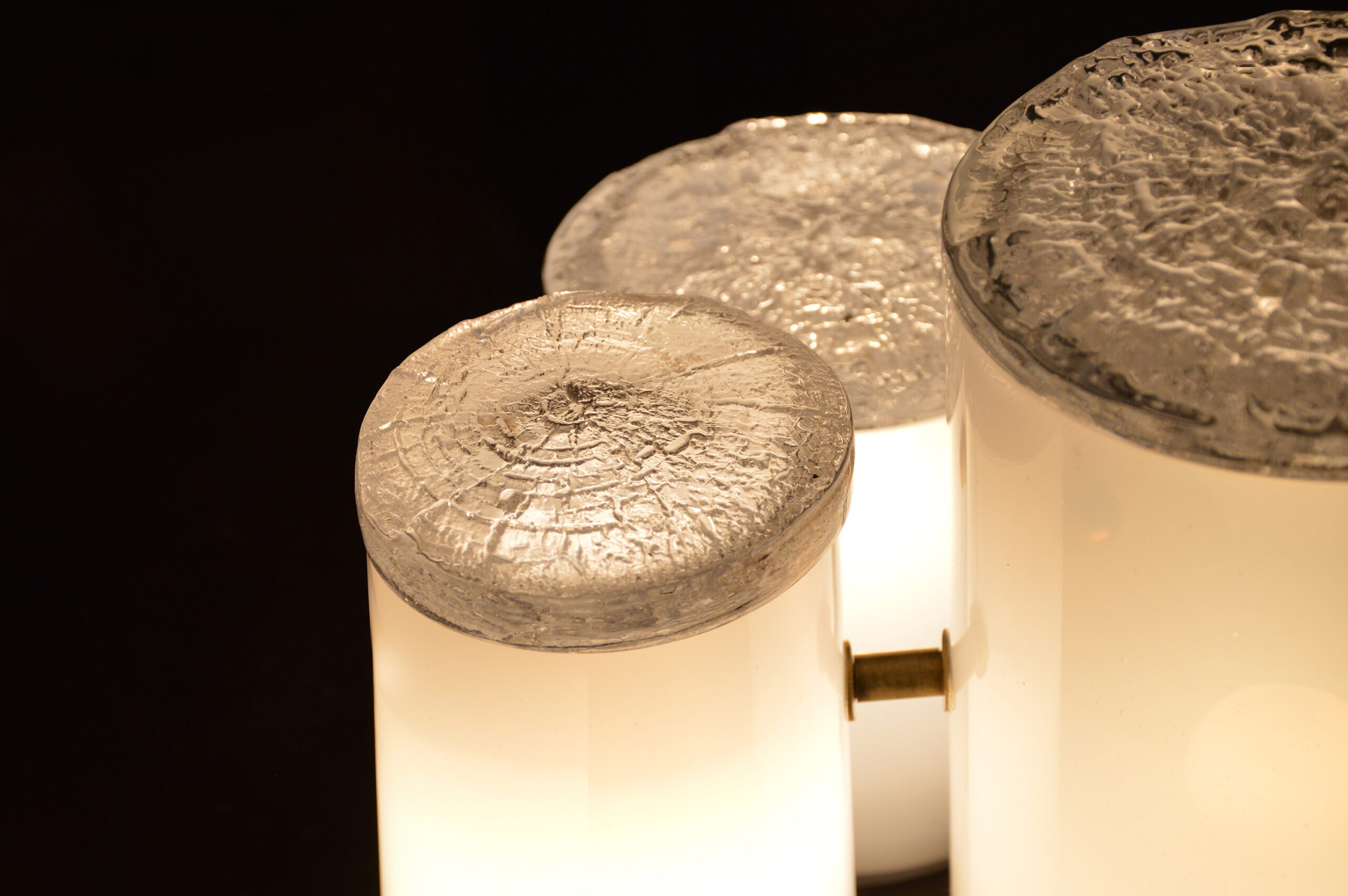 En résidence à la Villa Médicis, Eve George se consacrera à une recherche sur le luminaire inspiré des structures naturelles des fruits et des graines. Le projet explore leurs principes biologiques et formels – imbrication, modularité, dissémination – afin d’imaginer des typologies lumineuses déclinables. Cette recherche prolonge ses travaux sur les moules modulables : à l’image de la nature qui compose des formes imbriquées, elle recherche une rationalité organique dans l’outil de production et les formes qu’il génère. Un second axe explore la murrhine, soulignant le parallèle visuel entre la technique italienne du millefiori et les motifs révélés à la coupe des fruits et des coques.
