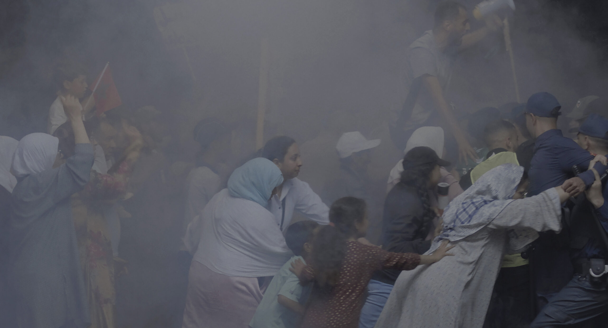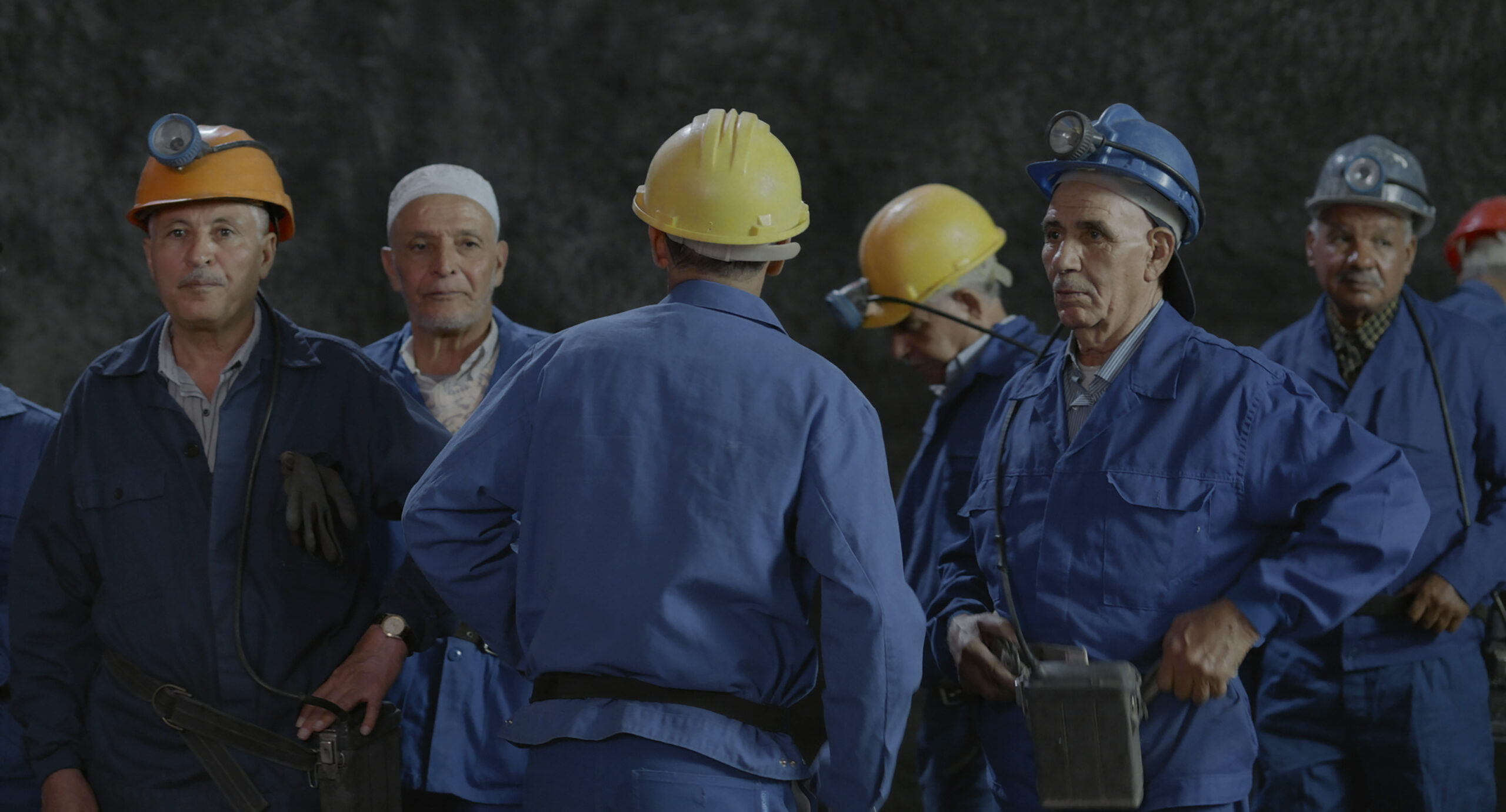 Jerada est une ville minière au Maroc où l’exploitation du charbon, bien que officiellement arrêtée en 2001, se poursuit de manière informelle jusqu’à aujourd’hui. “L’mina” reconstitue le travail actuel dans les puits en utilisant un dispositif de décor conçu en collaboration avec les habitant·e·s de la ville, qui se mettent en scène dans leur propre rôle.